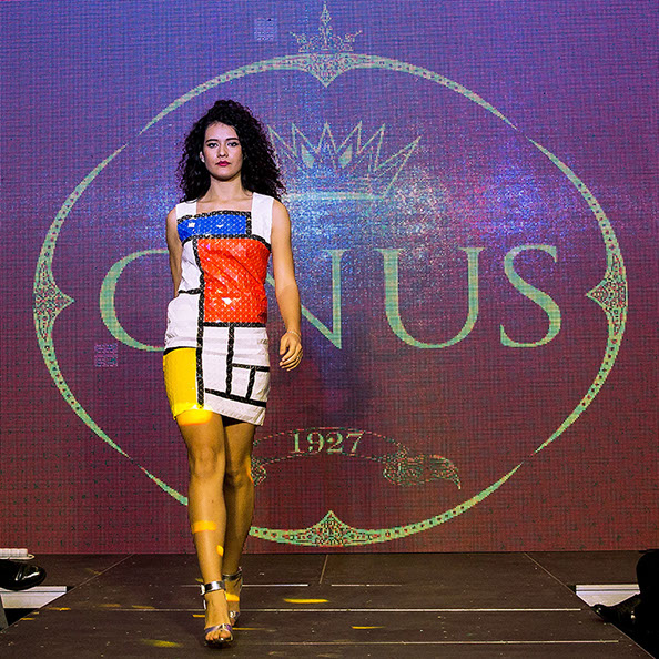 The modern version of the dress "SYMMETRY" designed by Jonuz Pernaska in 1945