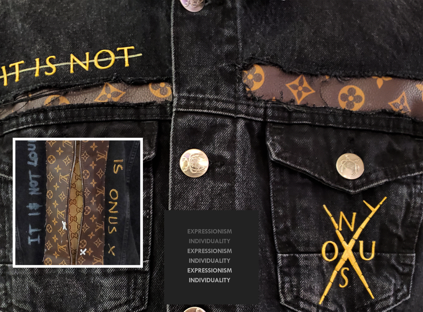 Each ONUS X piece is a unique garment that is cut, styled, painted, 3D printed and hand crafted to become a wearable work of art. Our materials are collected internationally from used luxury goods, which undergo a rigorous UPCYCLING production process, each final piece being one of a kind. ONUS X is about empowering your style with personalized art while contributing to a safer environment. Each ONUS X piece is 1of1. Uniqueness and a safer planet. Consume less, create more.