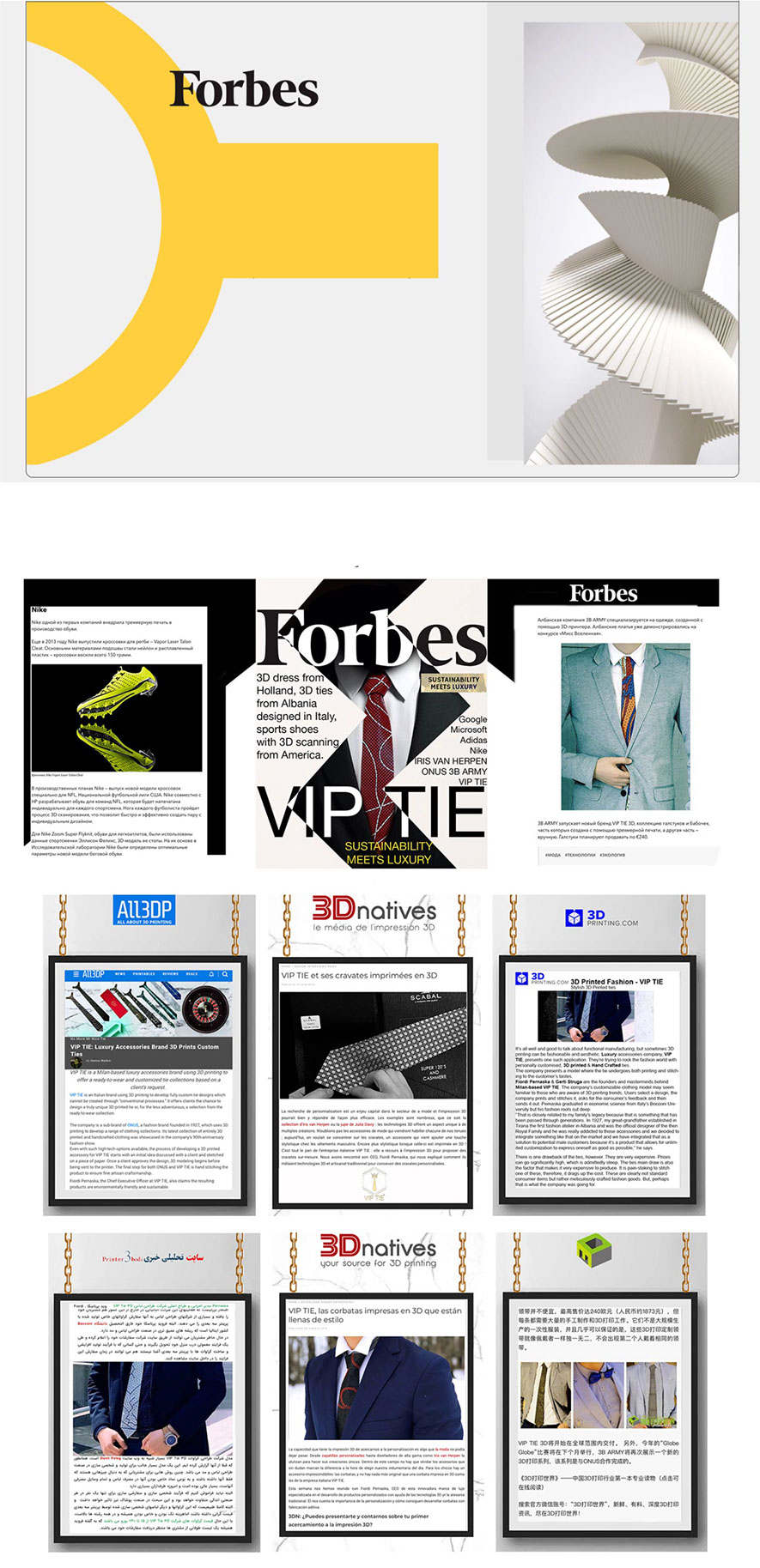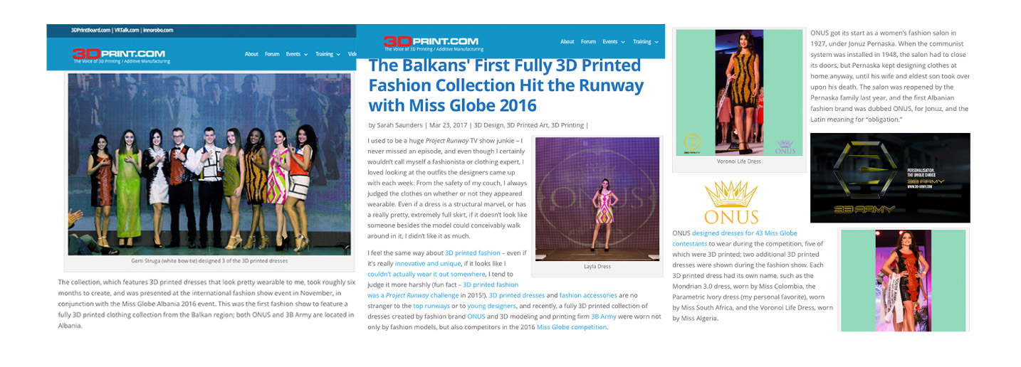 • 3D dress from Holland, 3D Ties and Fabrics from Albania designed in Italy, sports shoes with 3D Scanning from America.
