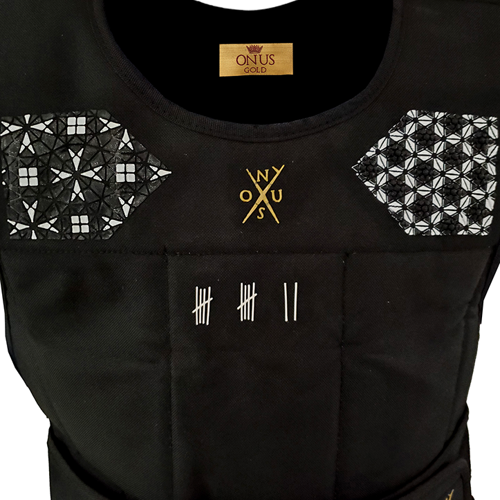 Repurposed Police vest. 3D printed & hand crafted sustainable details. Modified as weighted vest up to 10kg, for workout & running. The weights can be adjusted from 1kg to 10kg.